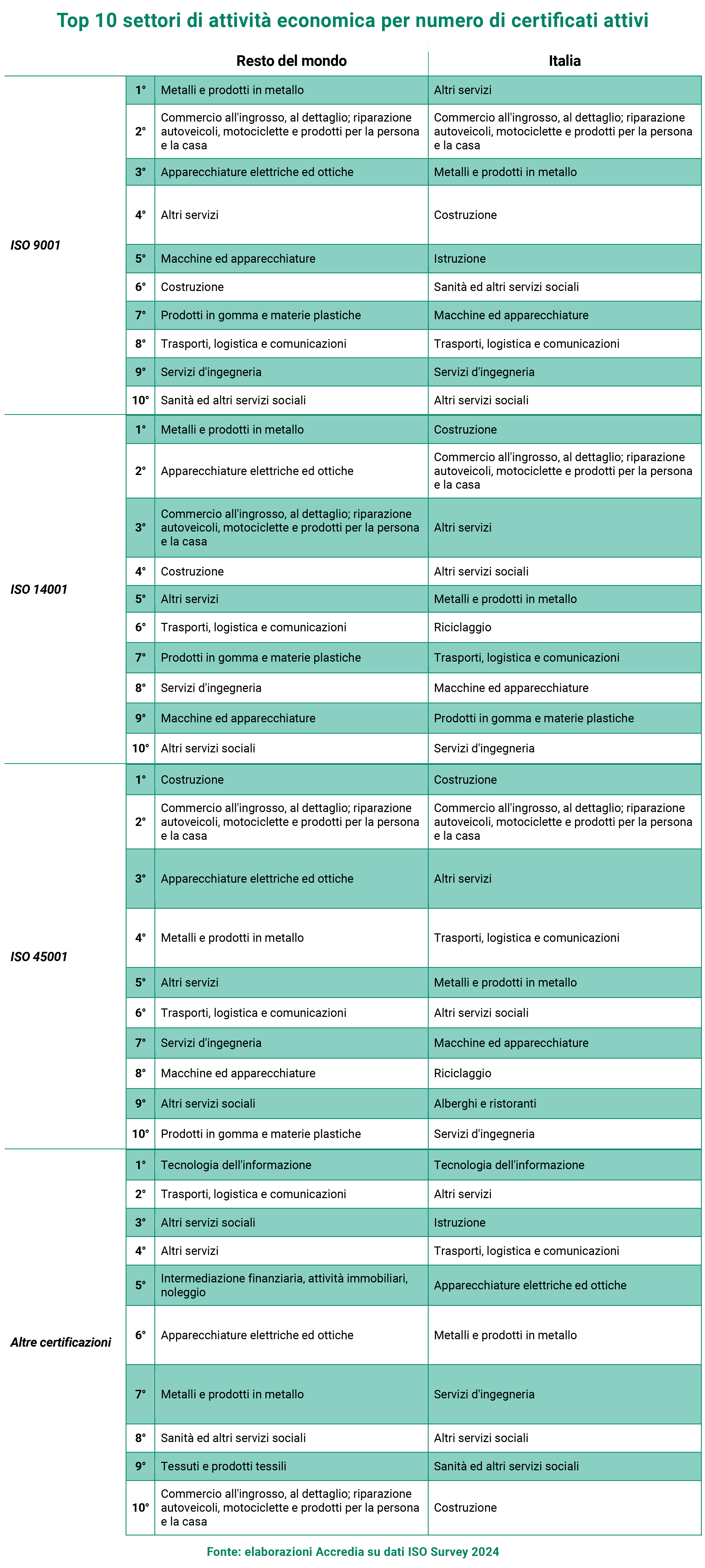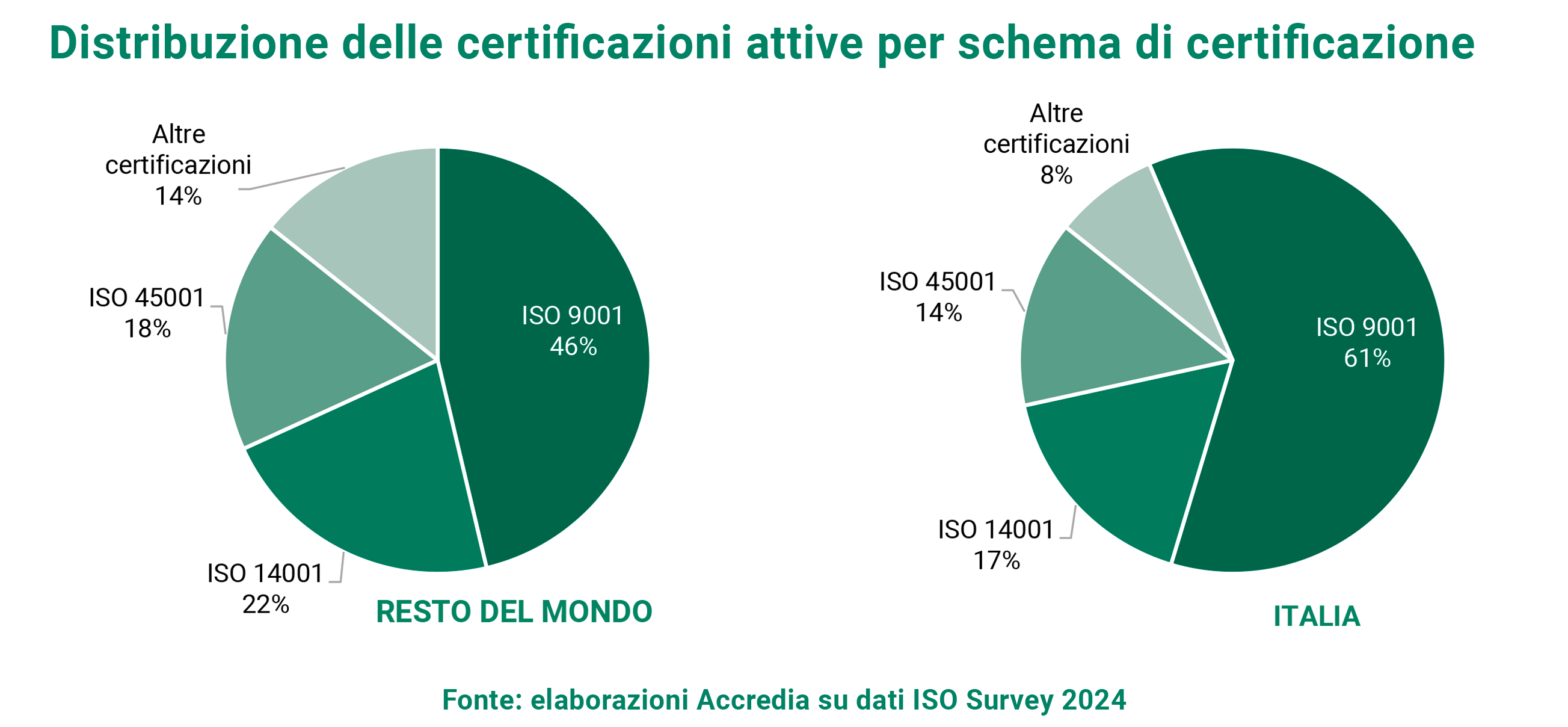 - ISO 9001 resta la certificazione più diffusa, con 101.426 certificati attivi