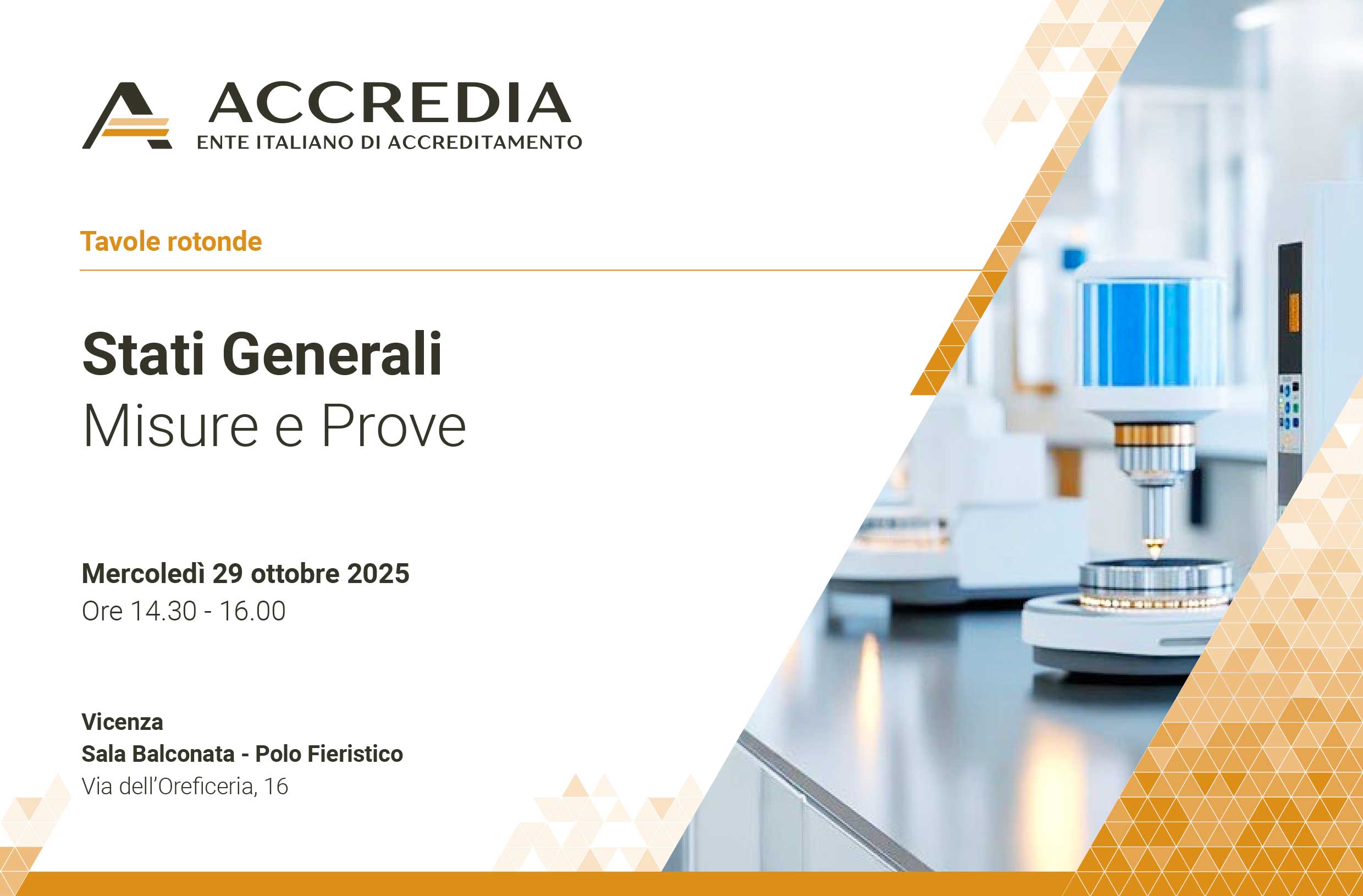 Incontri tematici organizzati da Accredia nell'ambito della Fiera A&T Automation & Testing presso il polo fieristico di Vicenza.