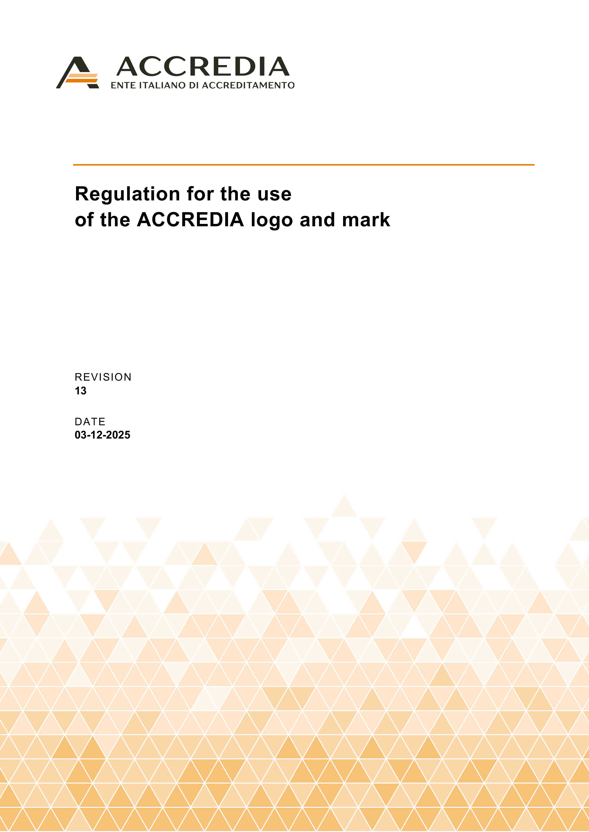 The institutional logo consists of the original pictogram and the names Accredia and Ente Italiano di Accreditamento, contained in a rectangular shape. For the exclusive use of Accredia, the institutional logo identifies all the documents published by Accredia, institutional, technical and communication.